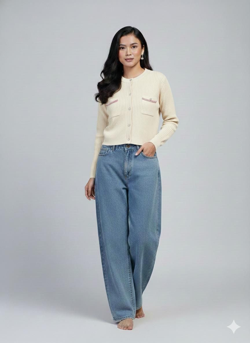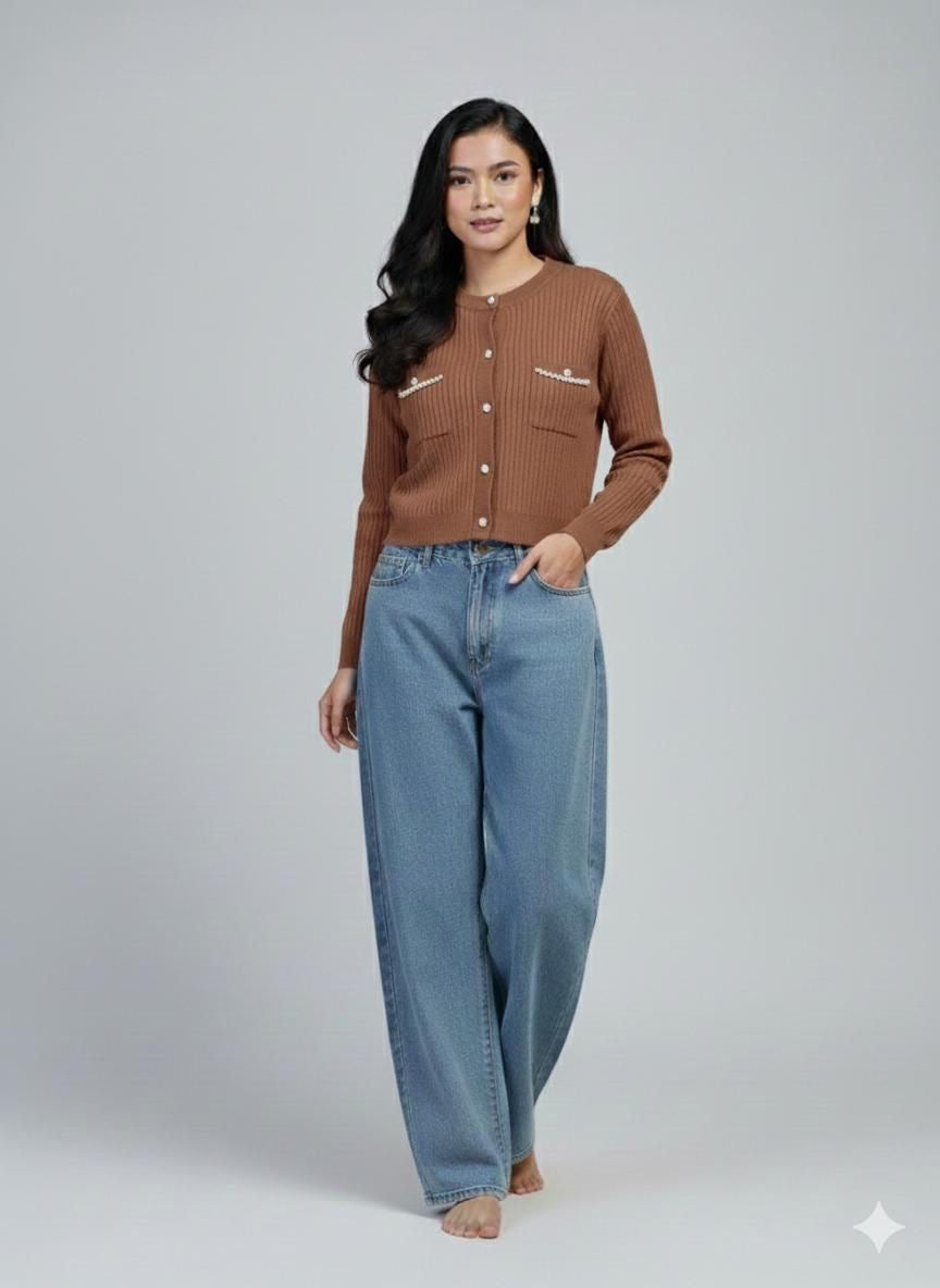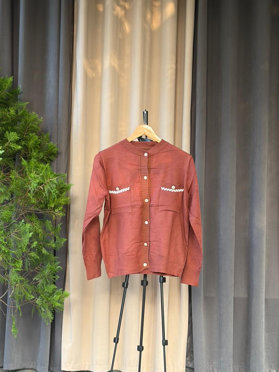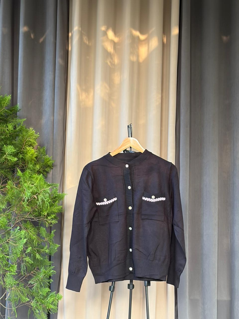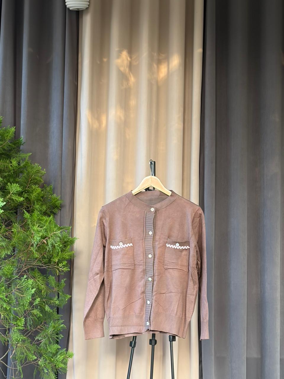 Elevate your wardrobe with this stylish knitted cardigan, featuring a classic round neckline, functional front pockets with decorative trim (available... Read more