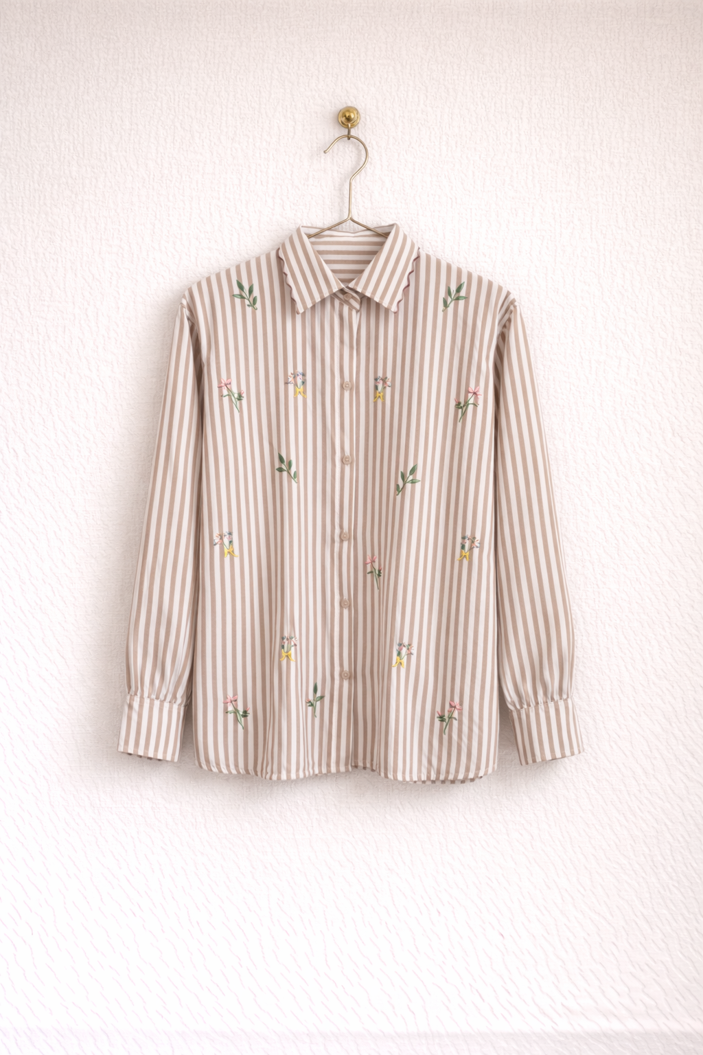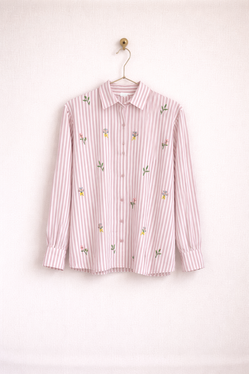 Embroidered Striped Shirt for Women | Floral Cotton Button-Down Top