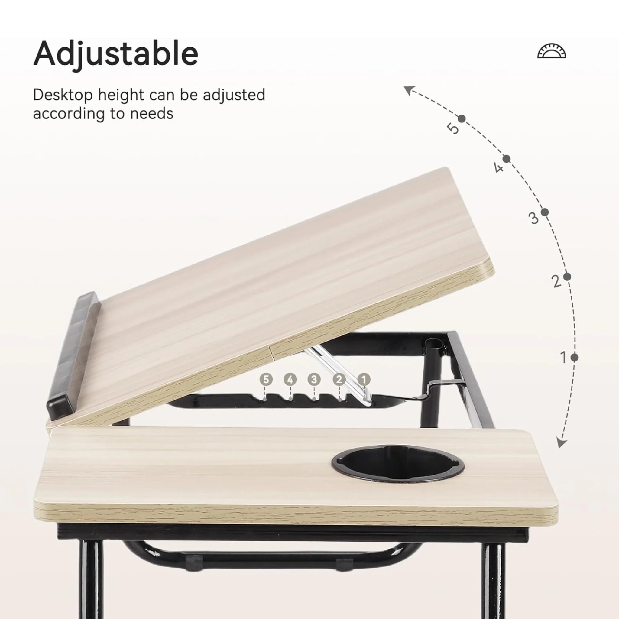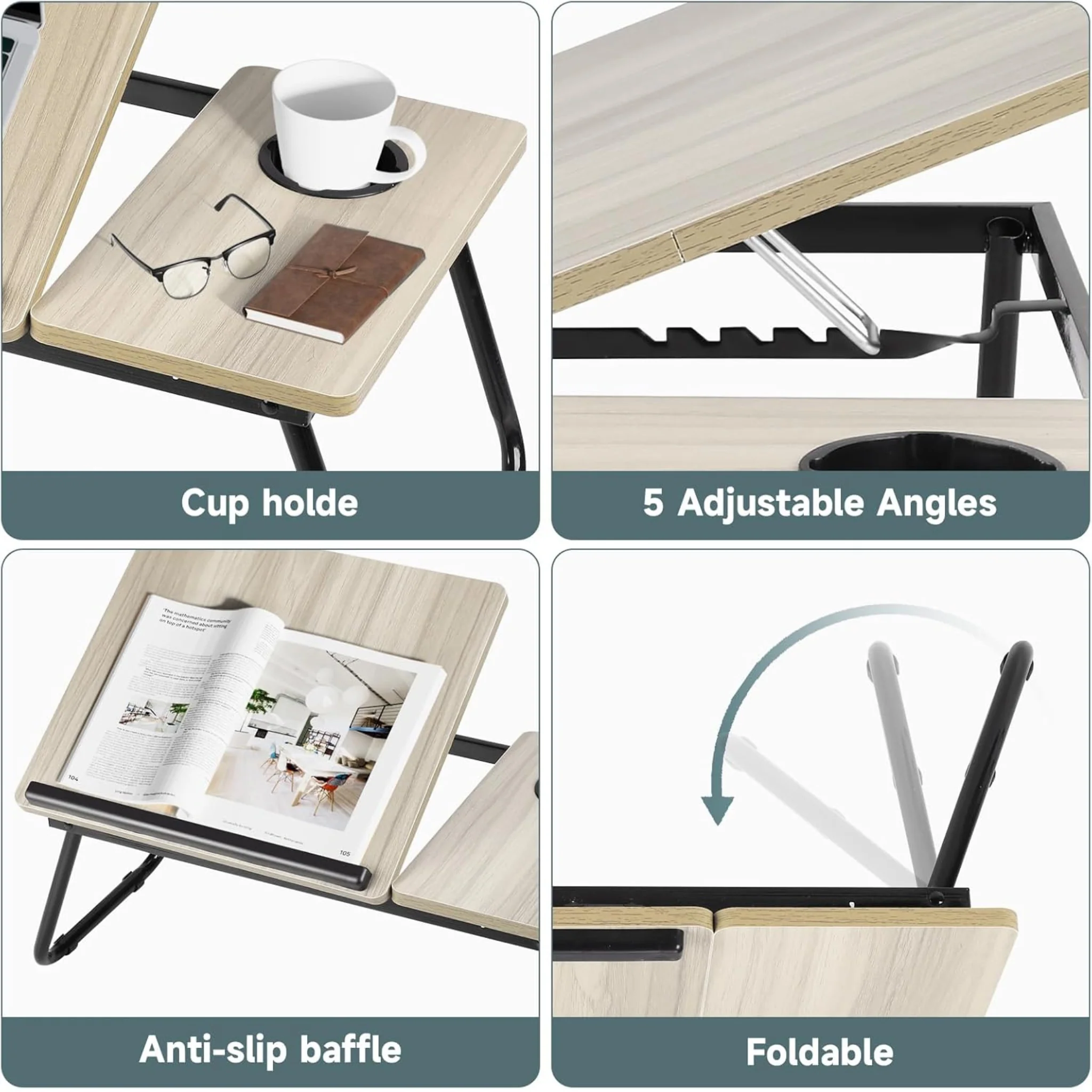 Adjustable Folding Laptop Table for Bed & Sofa – Wooden Laptop Desk with 5 Angle Settings & Cup Holder
