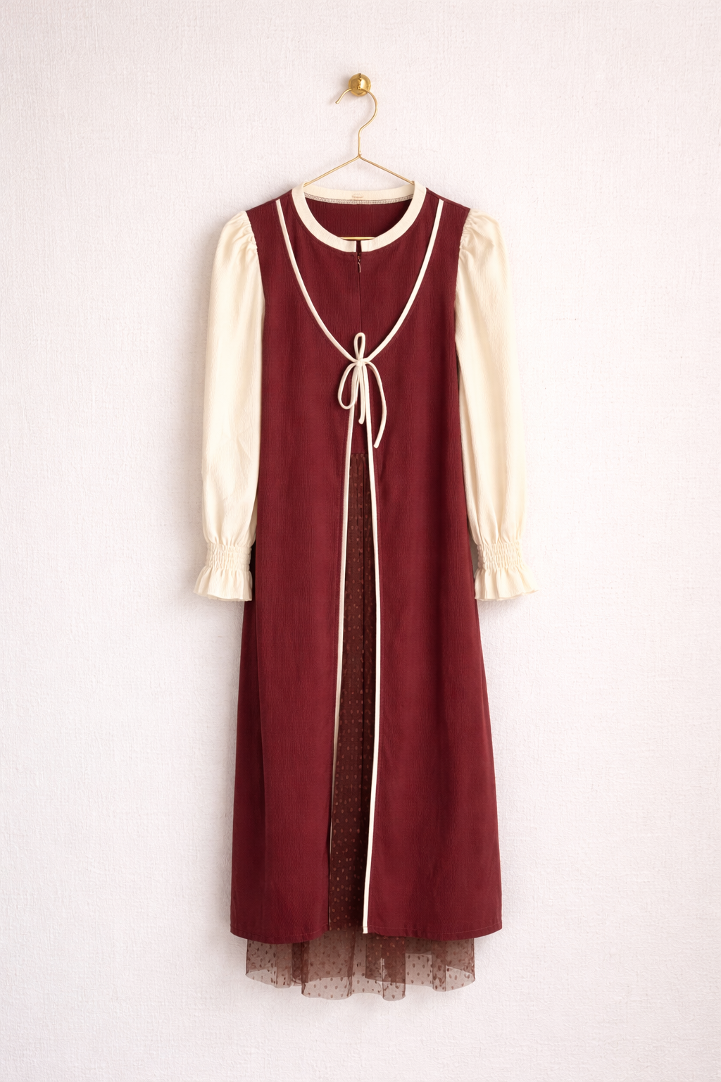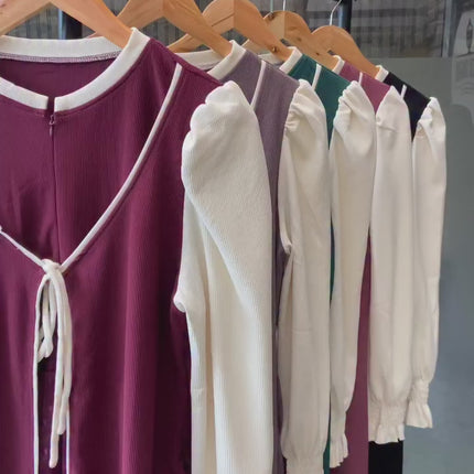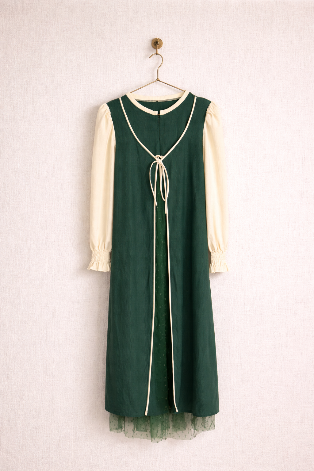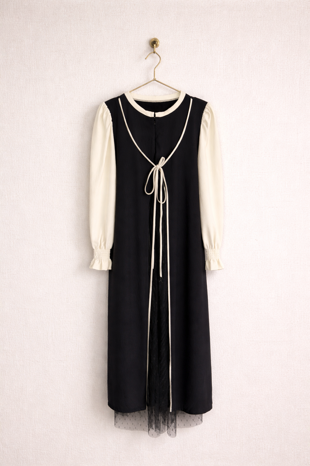 Shop elegant layered tie-front midi dresses for women with contrast sleeves. Modest, flowy and perfect for Eid, occasions, and everyday... Read more